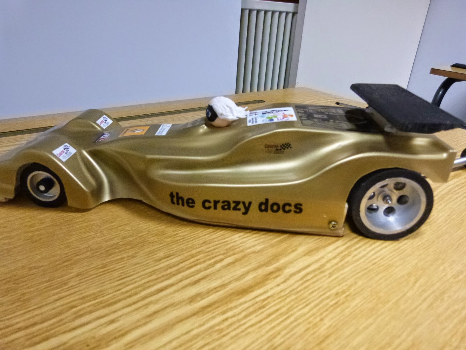 Un tournoi Knock-Out avait lieu en fin de journée, sur le principe suivant : deux voitures au départ, celle qui arrive première se qualifie pour l’étape suivante. A ce jeu, les Crazy Docs ont assuré ! Ils se sont hissés en demi-finale, parvenant même à battre la voiture la plus rapide de la journée (il faut dire que l’équipe responsable de cette voiture avait oublié d’y placer la batterie…).