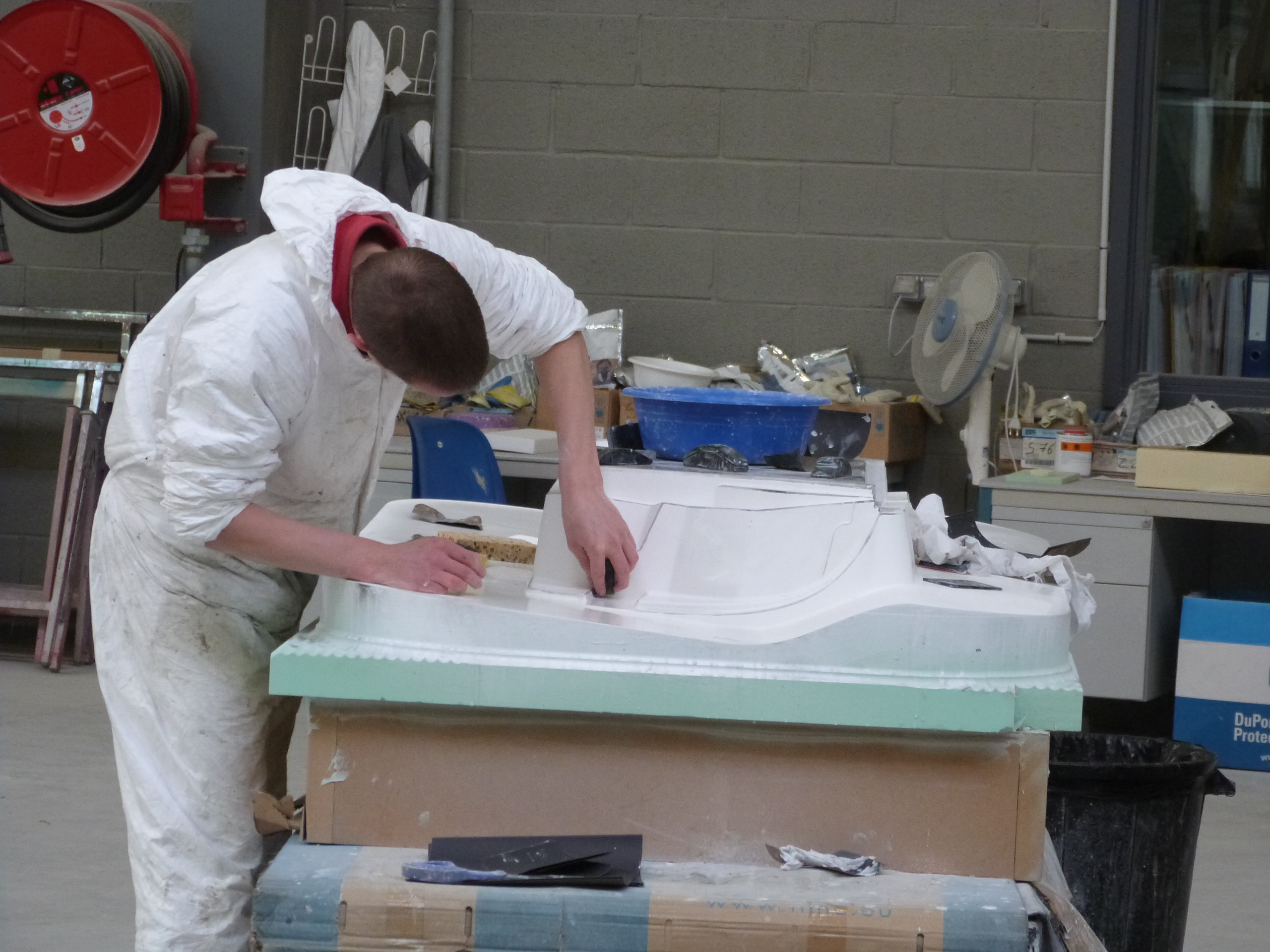 Pirus is one of our sponsors. They are in charge of making the mould for the car body. We visited the company workshop and the design department. It was very interesting. They use Polyurethane foam blocks. We saw the mould making process. We saw the making of a mould for a train front end. First they use cutters to cut the foam, then they use a cutting machine to get the accurate shape. They use a 3D scanner and solidworks software to design the mould. They showed other projects: a car bumper, a sand yacht, and a silo top.
