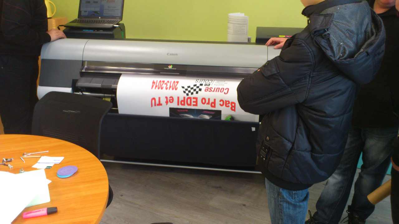 Après une petite réunion de mise en route, édition des affiches au format A0 sur le traceur du lycée: